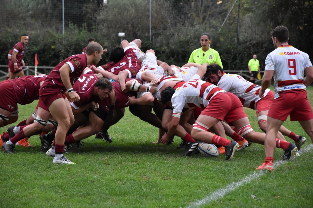Un inizio partita difficile per i la formazione pesarese, che perde Marangoni per un infortunio in fase di riscaldamento e resta con un uomo in meno per un cartellino giallo a Joubert, nei primi minuti di gioco. Feltre ne approfitta e al 10° minuto segna la prima meta (5-0). La formazione di casa allunga le distanze grazie a una meta di punizione (12-0) mentre per i giallorossi arriva un altro cartellino giallo, questa volta ad Azzolini. Pesaro reagisce e al 20’ arriva la prima meta giallorossa (12-7), targata Dolciotti (12-7). I kiwi ci prendono gusto, mantengono l’azione nella metà campo avversaria e impongono il ritmo. I giallorossi allargano il gioco e al 29’ arriva la marcatura di Erbolini alla bandierina (12-14). La Fiorini, determinata e concentrata, continua a imporre il suo gioco. Al 35’ la meta di Dal Pozzo porta il punteggio sul 12-21. Ma il primo tempo non è ancora finito, a chiuderlo è la seconda marcatura di giornata di Erbolini, che porta nuovamente l’ovale in meta alla bandierina (12-26).