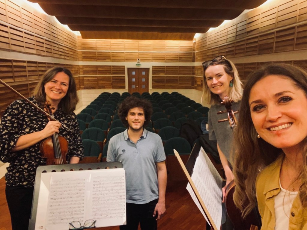 Il 21 giugno ore 21.30 nell’elegante cornice della settecentesca Villa Caprile, affacciata con il suo parco sulla città di Pesaro dal Monte San Bartolo, l’appuntamento è per lo Yūgen Quartet, giovane formazione più volte ospite della WKO, per l’occasione unita al clarinetto solista di Marco Messa. Formato da Simona Cavuoto (violino), Małgorzata Maria Bartman (viola), Ulyana Skoroplyas (violoncello) e da Nicola Pantani (pianoforte), l’enseble si propone di divulgare opere, note ed inedite, del repertorio scritto per la formazione di violino, viola, violoncello e pianoforte, del periodo romantico, moderno e contemporaneo. In programma tre capolavori della musica cameristica: il Quintetto per clarinetto e quartetto d’archi K. 581 di Wolfgang Amadeus Mozart, il Quartetto per pianoforte e archi op. 47 di Robert Schumann, l’Ouverture su temi ebraici op. 34 di Sergej Prokofiev, un brano per clarinetto, archi e pianoforte di rara esecuzione.