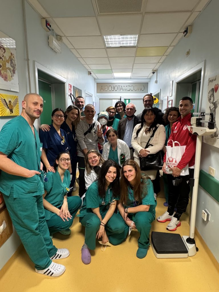 La Vis Pesaro 1898 è tornata a far visita ai piccoli amici e amiche del Presidio Pediatrico “Salesi” di Ancona. L’allenatore in seconda, mister Andrea Gennari, e Manuel Pucciarelli hanno portato alcuni doni a bambini e bambine dei reparti di Oncoematologia e Neuropsichiatria Infantile, ricevendo in cambio un’ondata di affetto. Grazie al supporto degli sponsor Vis Pesaro Francesco Rossi, titolare dell’azienda 24srl, Maria Rosaria Rodio, Project Manager di Pr.El.Cart. Europe Engineering S.r.l. ed Enrico Rossi, presidente dell’associazione “Lisa Rossi – Grazie Gesù”, sono stati consegnati giocattoli, palloni, maglie biancorosse, sacche sportive e tanto altro.