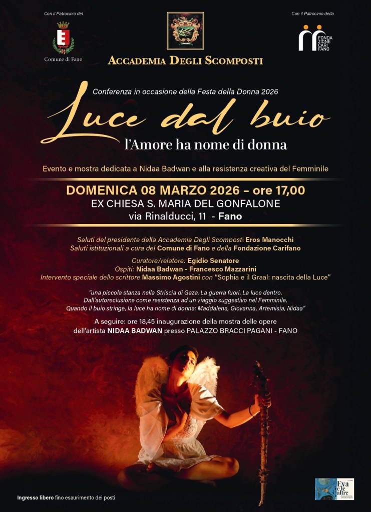 Domenica 08 marzo, l’evento prenderà le mosse alle ore 17.00 presso l’ex Chiesa del Gonfalone – in via Rinalducci 11 – con i saluti del Presidente dell’Accademia degli Scomposti, Eros Manocchi, ed i saluti istituzionali del Comune di Fano e della Fondazione Carifano.