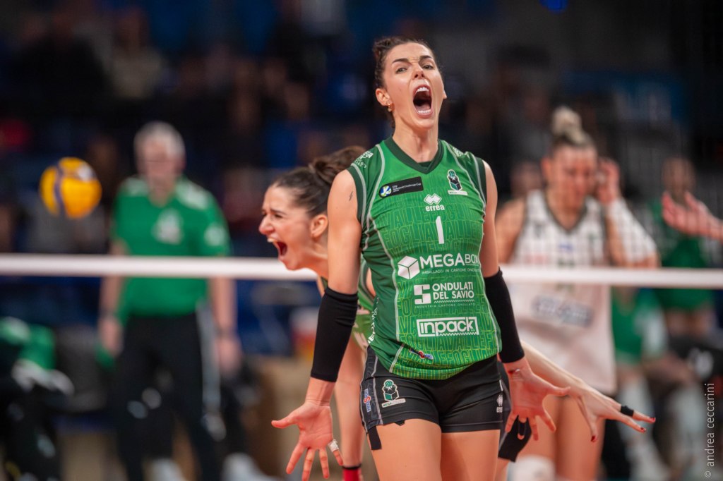 La Megabox Ondulati del Savio spreca un po’ troppo nel quarto set, condotto anche di sei lunghezze, ma si ritrova nel tie-break e porta a casa una vittoria molto importante sul Panathinaikos Atene in vista della gara di ritorno nella capitale greca, in programma mercoledì prossimo alle 18. Una Bici monumentale (32 punti con il 43% in attacco e 4 ace) si è presa sulle spalle gran parte degli attacchi della squadra (63 palloni), Ungureanu e Omoruyi (decisiva nel tie-break) si sono alternate in posto 4 con alterna fortuna, ma alla fine la Mvp è stata Gaia Giovannini, in campo dall’inizio alla fine e bersagliata in ricezione, ma utile in ogni zona del campo e autrice di 12 punti. Tra le ospiti, bravissime ad approfittare dei momenti di calo della Megabox, ottima la partita di Lampkowska (19 punti con il 44%) ed eccellente prova di tutto il gruppo, con 13 atlete in campo. Per il ritorno ad Atene ci vorrà la migliore Megabox per portare a casa la Challenge Cup.