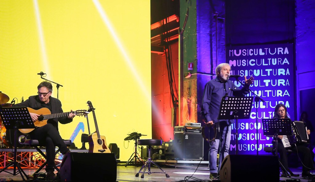 Claudio Covato, accompagnato dalla sua chitarra, ha acceso la platea con i brani “Nell’universo” una ballata che parla di solitudini e vicinanze e “Chiddu ca me resta” un brano immateriale che, attraverso le immagini della natura, esplora ciò che unisce ogni cosa nel mondo. Covato si laurea in chitarra classica e in canto lirico al conservatorio, studia composizione e sviluppa tecniche improvvisative personali che diventano cifra distintiva dei suoi live, dove la solidità accademica si intreccia con una scrittura istintiva e profondamente legata alle radici. Il suo progetto prende forma nel dicembre 2023 e in poco tempo lo porta a calcare i palchi d’Italia, forte di una produzione di cinque doppi singoli e un videoclip. Nella sua musica convivono italiano e dialetto, folk e canto lirico, una miscela che gli è valsa il Premio Fabrizio De André 2025 in quanto capace di trasformare il dialetto siciliano in lingua universale.