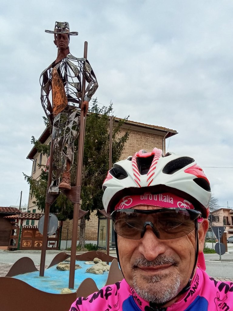 La sua bicicletta è un mezzo semplice, quasi silenzioso, ma negli anni è diventata qualcosa di più: una lente con cui osservare il territorio, un modo per leggere la storia nascosta tra una strada provinciale e un piccolo monumento dimenticato.