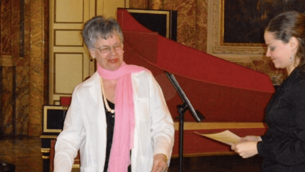 – La prof.ssa Pascoli con una concorrente durante un concorso internazionale di clavicembalo.