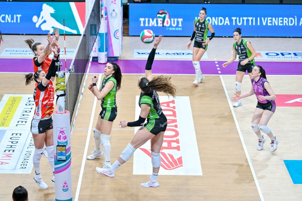 La Megabox Ondulati del Savio stoppa la fuga della capolista Honda Cuneo, in testa al Girone B dei play-off per la qualificazione alla Challenge Cup 2026/27. Le tigri sono state capaci di trovare chissà dove le forze fisiche e mentali necessarie per bloccare sul loro campo la corsa di avversarie lanciatissime e ultra motivate dopo aver raggiunto il traguardo della salvezza. Dopo il successo storico di Atene, la squadra del presidente Angeli ha trovato ancora una volta nel gruppo la forza morale per strappare un secondo set che era già nelle mani delle avversarie e di aggiudicarsi il quarto nuovamente in volata nelle condizioni più difficili, dopo l’ace fortunoso di Signorile e l’uscita di Bici sul 23-23.