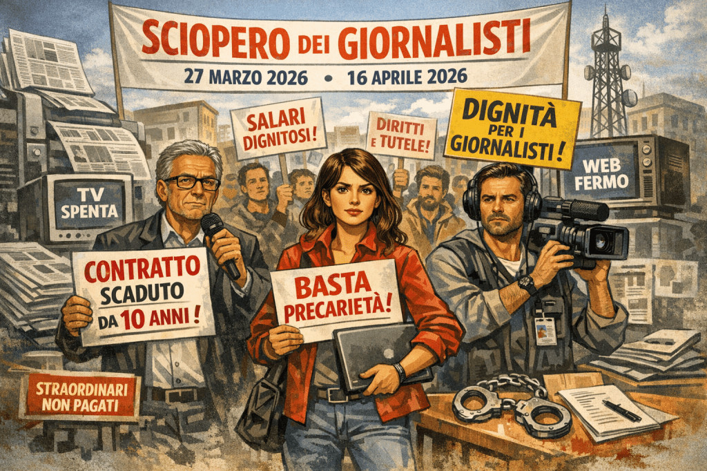 In occasione della giornata di sciopero di venerdì 27 marzo alle 11.30, il sindacato dei giornalisti Marchigiani organizza un flash mob in piazza Plebiscito di Ancona di fronte alla prefettura per evidenziare, ai cittadini e alle istituzioni, come rivendicazioni economiche e la qualità dell’informazione siano temi strettamente connessi a tutela di un’informazione libera e pluralistica.