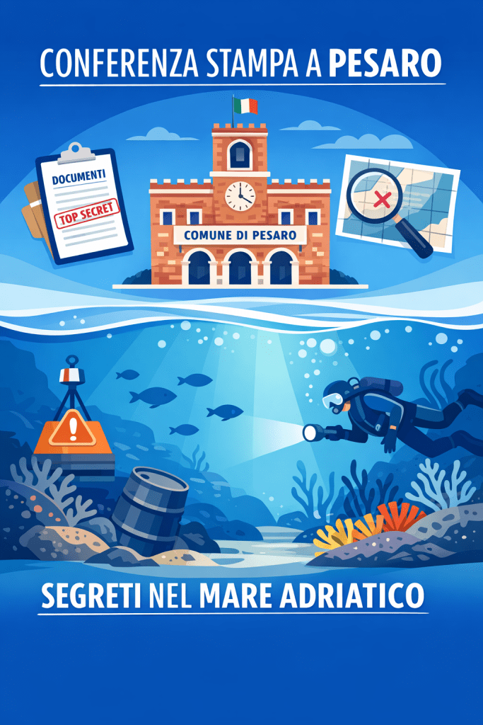 La cittadinanza di Pesaro è invitata a partecipare venerdì 27 marzo ore 11:30 alla conferenza stampa che si terrà nella Sala del Consiglio comunale di Pesaro, Piazza del Popolo n. 1. Sarà l’occasione in cui il giornalista investigativo Gianni Lannes comunicherà alle Autorità e alle Rappresentanze Istituzionali, invitate a partecipare, le coordinate di affondamento dell’arsenale di armi chimiche di varia tipologia (bombe all’iprite e barili all’arsenico) gettate in mare dai nazitedeschi. A tal fine verranno illustrati e ampiamente descritti numerosi documenti: dal rapporto militare del Sonderkommando Meyer datato 10 agosto 1944 ai dati ufficiali della Marina Militare italiana e dell’Istituto Idrografico della Marina di Genova, fino all’inchiesta del giornalista, emersa nel docufilm Il mare invisibile presentato a Pesaro il 16 gennaio 2026 e gli “avvisi ai naviganti” della Marina Militare, nonché le mappe nautiche dell’Istituto Idrografico della Marina con sede a Genova, che attestano e segnalano numerose zone marine nel Mare Adriatico dove giacciono considerevoli quantitativi di ordigni speciali (banditi dalla Convenzione di Ginevra del 1925 e dal Trattato di Parigi del 1993). Una storia più attuale che mai, dato che iprite e arsenico rischiano di compromettere drammaticamente la salute e la sicurezza dell’ecosistema marino, oltre che dell’uomo, se le Istituzioni competenti non si attiveranno in modo tempestivo e adeguato per la bonifica (pratica già effettuata a Molfetta, dove c’era una situazione di armi chimiche in mare simile a quella di Pesaro).
