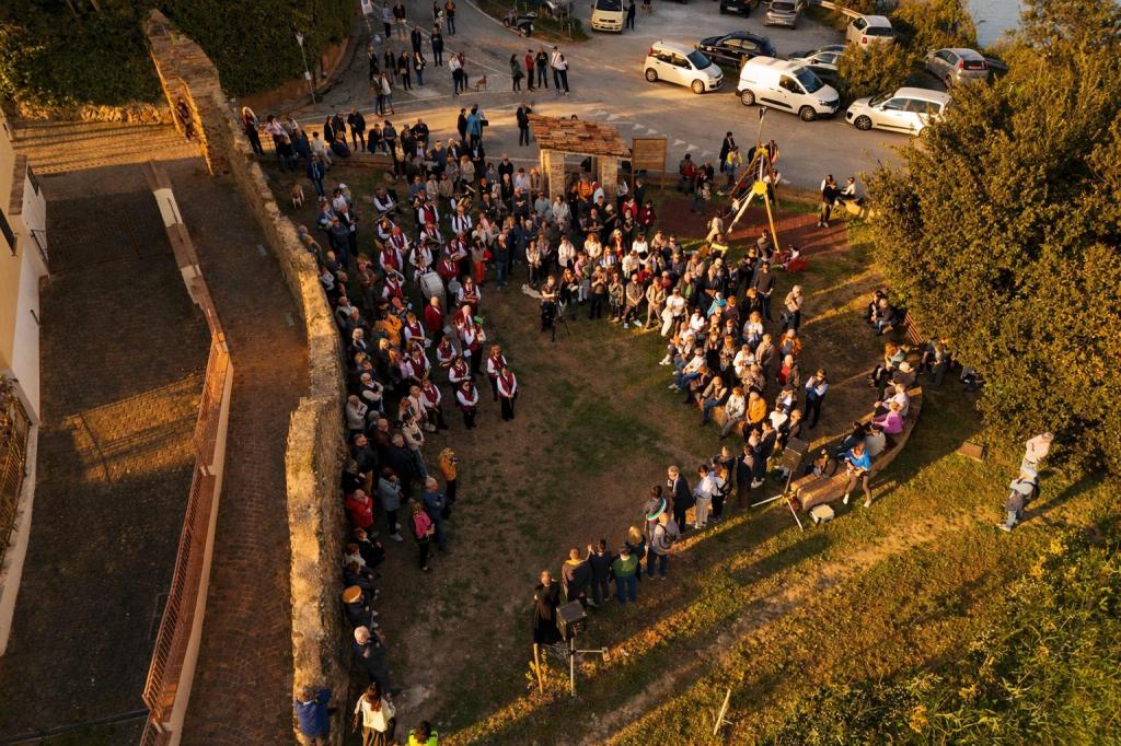 C’era un’intera comunità in festa, oggi per accogliere le ritrovate mura storiche di Casteldimezzo, oggetto di restauro e consolidamento del tratto sud-ovest delle mura urbiche e dei bastioni.