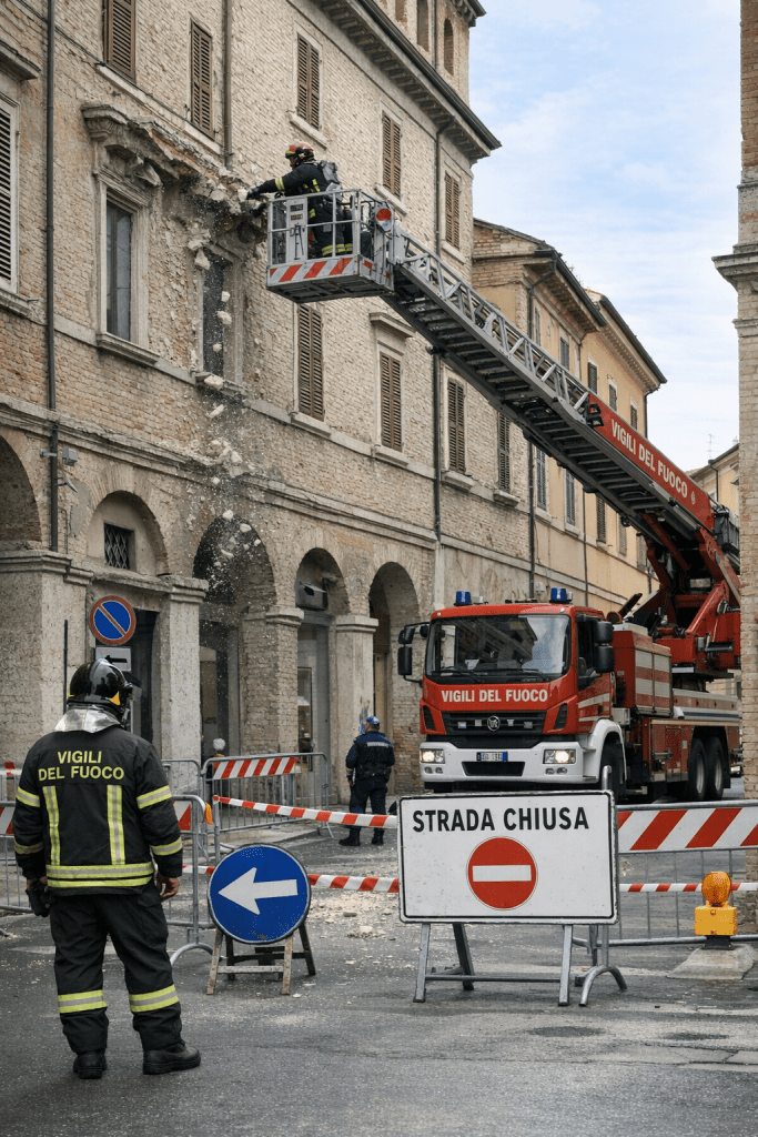 Un episodio che riporta l’attenzione sulla necessità di monitorare con regolarità gli edifici del centro storico, soprattutto quelli più datati, dove il deterioramento delle facciate può rappresentare un rischio per residenti e passanti.