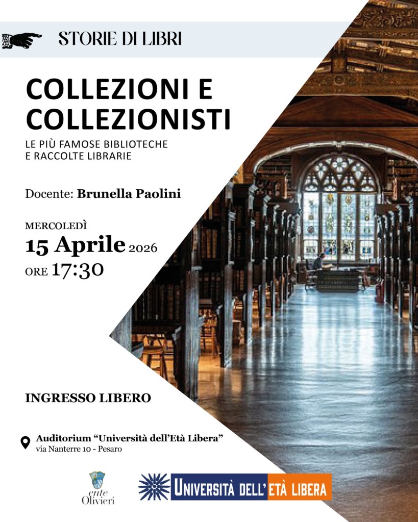 L’incontro si terrà mercoledì 15 aprile alle 17.30 nell’Auditorium dell’Università dell’Età Libera (via Nanterre 10, Pesaro); ingresso libero fino esaurimento posti.