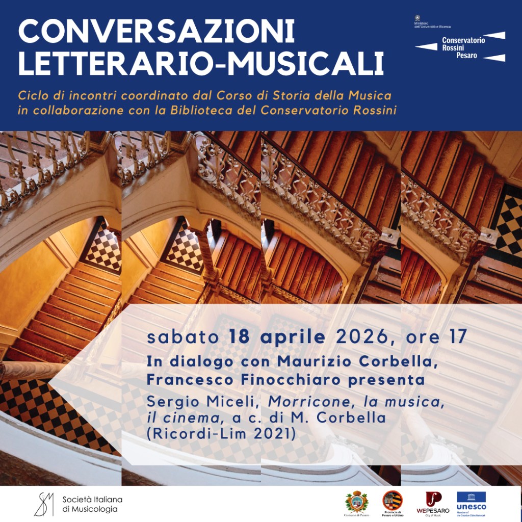 La dimensione di alta formazione artistica e musicale del Conservatorio Statale di Musica “G. Rossini” di Pesaro si esprime sempre più nella capacità di promuovere iniziative di elevato profilo culturale, attente al dialogo interdisciplinare con le arti della contemporaneità oltre che alla valorizzazione del patrimonio musicale del passato. Va in questa direzione l’evento organizzato dal Conservatorio per il prossimo 18 aprile. Il pomeriggio a Palazzo Olivieri, sede del Conservatorio, si terrà il terzo e ultimo incontro del ciclo Conversazioni letterario-musicali con la presentazione del volume Morricone: la musica, il cinema di Sergio Miceli, riedito in una nuova veste editoriale dopo oltre venticinque anni dalla prima pubblicazione (Ricordi-LIM, 2022). Il prof. Francesco Finocchiaro, docente di Storia della musica del Conservatorio, dialogherà con il curatore della nuova edizione, Maurizio Corbella, accompagnando il pubblico nella lettura dell’unica monografia dedicata a Ennio Morricone, ricca di analisi delle partiture autografe e di un quadro critico approfondito sulla produzione e sulla poetica del grande compositore di musica per film (e non solo). Un incontro di grande interesse perfettamente in linea con l’attenzione rivolta dalla città di Pesaro alla settima arte.