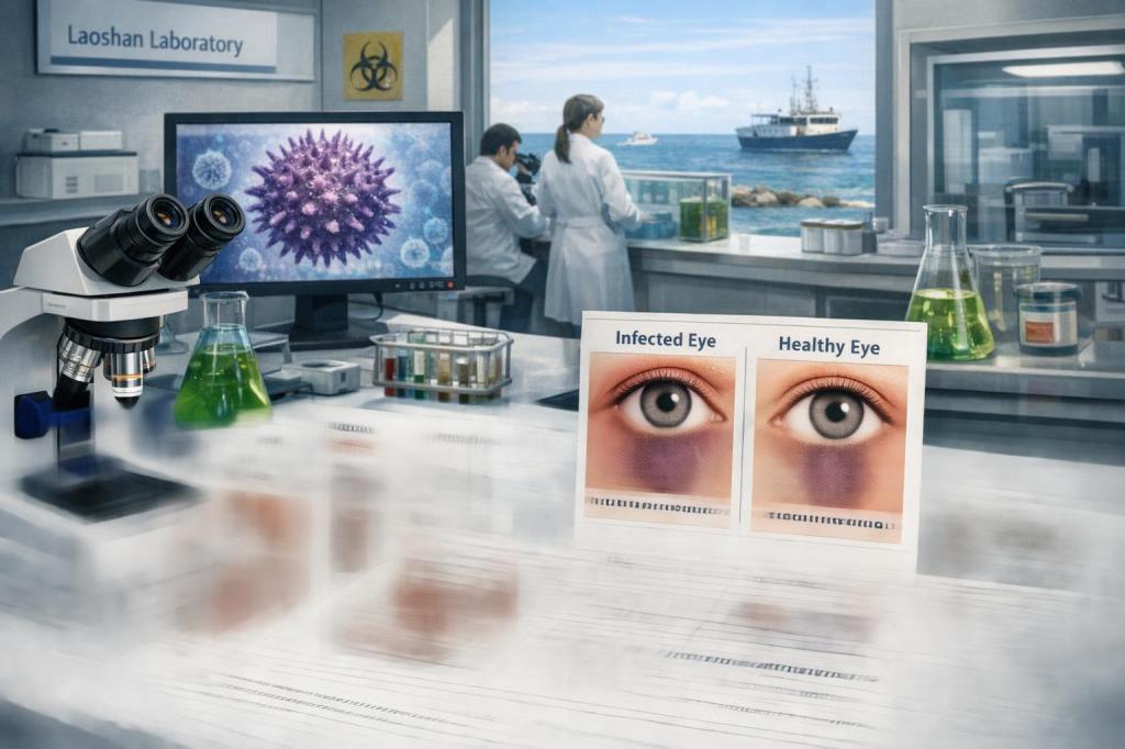 Qingdao (Cina), 10 aprile 2026 – Un gruppo di ricercatori del Laoshan Laboratory di Qingdao ha identificato un nuovo virus marino, il cover mortality nodavirus (CmNV), capace di infettare l’occhio umano. Lo studio, pubblicato su Nature Microbiology, collega il patogeno a una malattia oculare finora sconosciuta: l’uveite anteriore virale ipertensiva oculare persistente (POH‑VAU), una forma di infiammazione simile al glaucoma che può provocare aumento della pressione intraoculare e perdita della vista.
