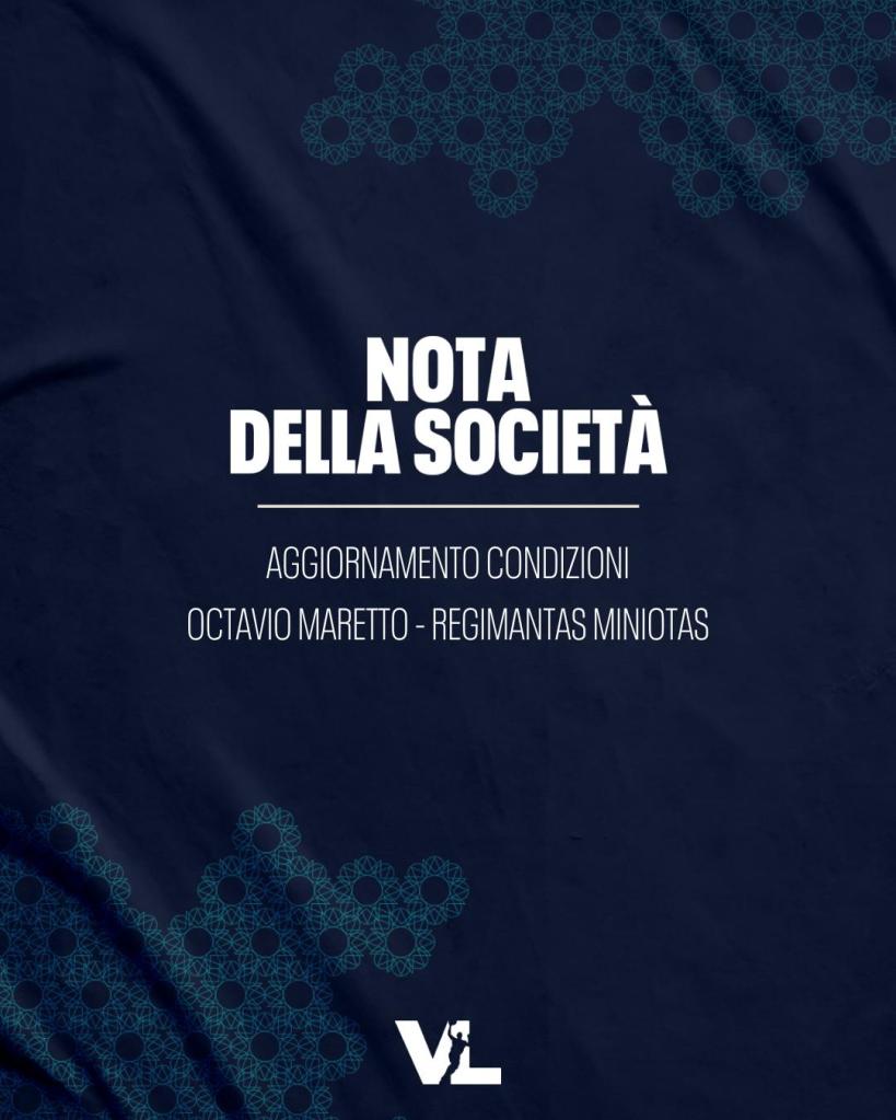 Maretto ha riportato una distorsione di secondo grado alla caviglia destra, con lesione ai legamenti. Stop anche per Miniotas a causa di una lesione di primo grado al muscolo grande adduttore destro.