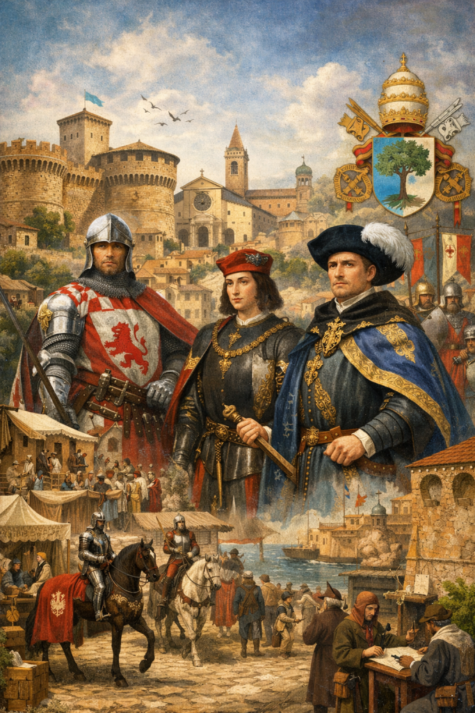 - Della Rovere Queste casate trasformano Pesaro in un centro rinascimentale vivace, con palazzi, fortificazioni, manifatture e un porto rinnovato.