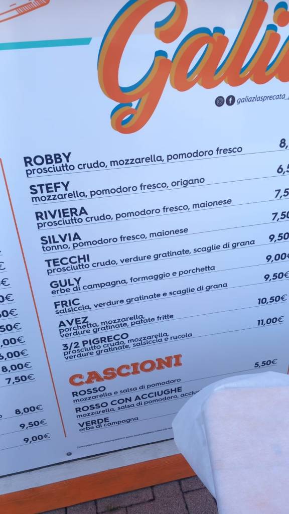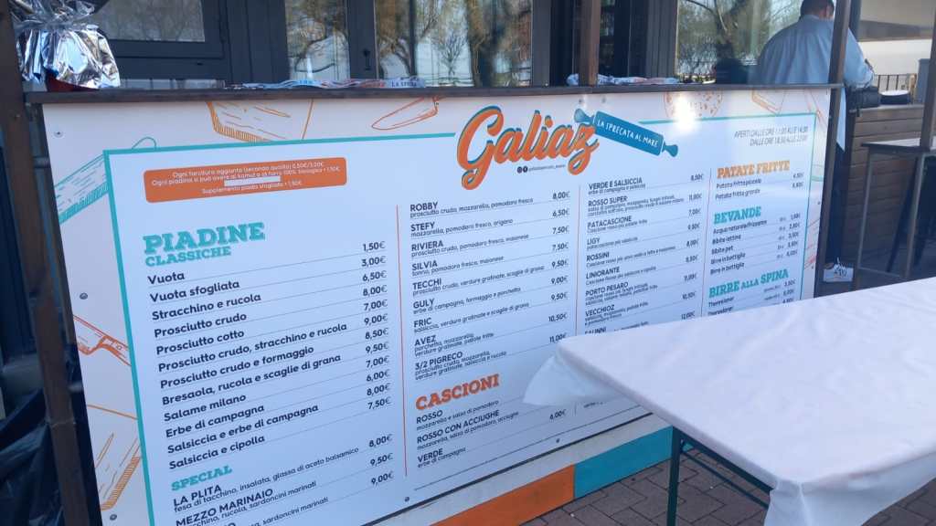 Una piadina che unisce cascione rosso e patatine fritte, diventata nel tempo un piccolo culto per chi già conosceva Galiaz “la Sprecata” storica meta di Gabicce cha però ha sfamato specialmente in estate almeno due o tre generazioni di pesaresi.