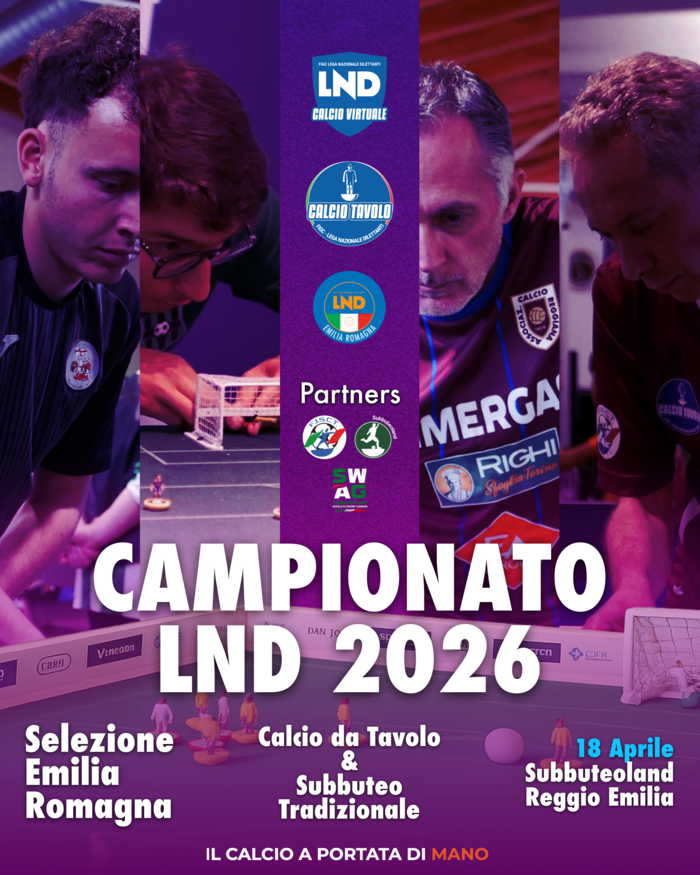 La tappa regionale dell’Emilia-Romagna assegnerà, per ciascuna disciplina, gli accessi alle competizioni delle Finali Nazionali del 5 luglio a Reggio Emilia. Il vincitore regionale del Calcio da Tavolo e il vincitore regionale del Subbuteo Tradizionale accederanno alla competizione Elite, che assegnerà il Titolo Nazionale LND per ciascuna disciplina. I secondi classificati accederanno alla competizione Advance, mentre i due semifinalisti accederanno alla competizione Middle. Una struttura pensata per valorizzare il percorso di più società possibili e rendere l’evento conclusivo un vero momento di incontro nazionale, aumentando partecipazione, continuità agonistica e connessione tra i tanti protagonisti del campionato.