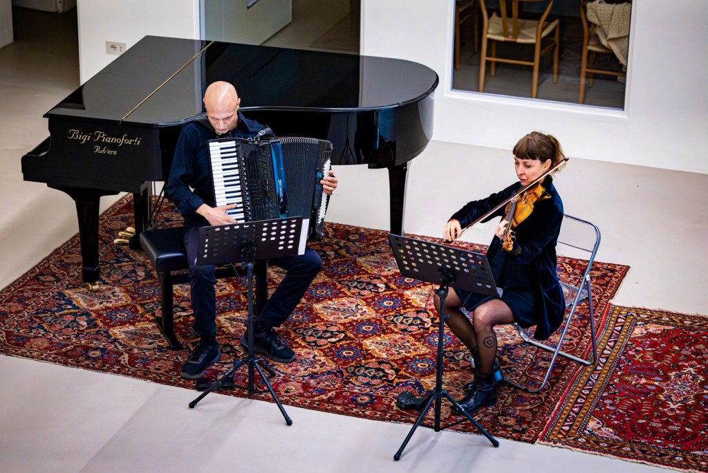 Labyrinthe 2a conduce l’ascoltatore dentro un labirinto sonoro: i due strumenti si inseguono, si smarriscono, si ritrovano, disegnando corridoi acustici e spazi inattesi. Il violino e la fisarmonica non raccontano una storia lineare, ma aprono squarci di paesaggi, dove il silenzio diventa parte del percorso.