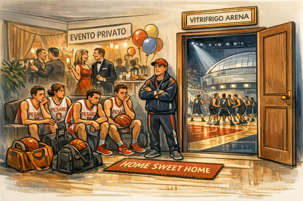 Pesaro continua a definirsi “città del basket”, ma ogni stagione che passa questa etichetta assomiglia sempre più a uno slogan svuotato. La squadra che dovrebbe essere il simbolo sportivo della città si ritrova puntualmente a fare i conti con una gestione degli spazi che la relega al ruolo di ospite nella sua stessa casa: la Vitrifrigo Arena.