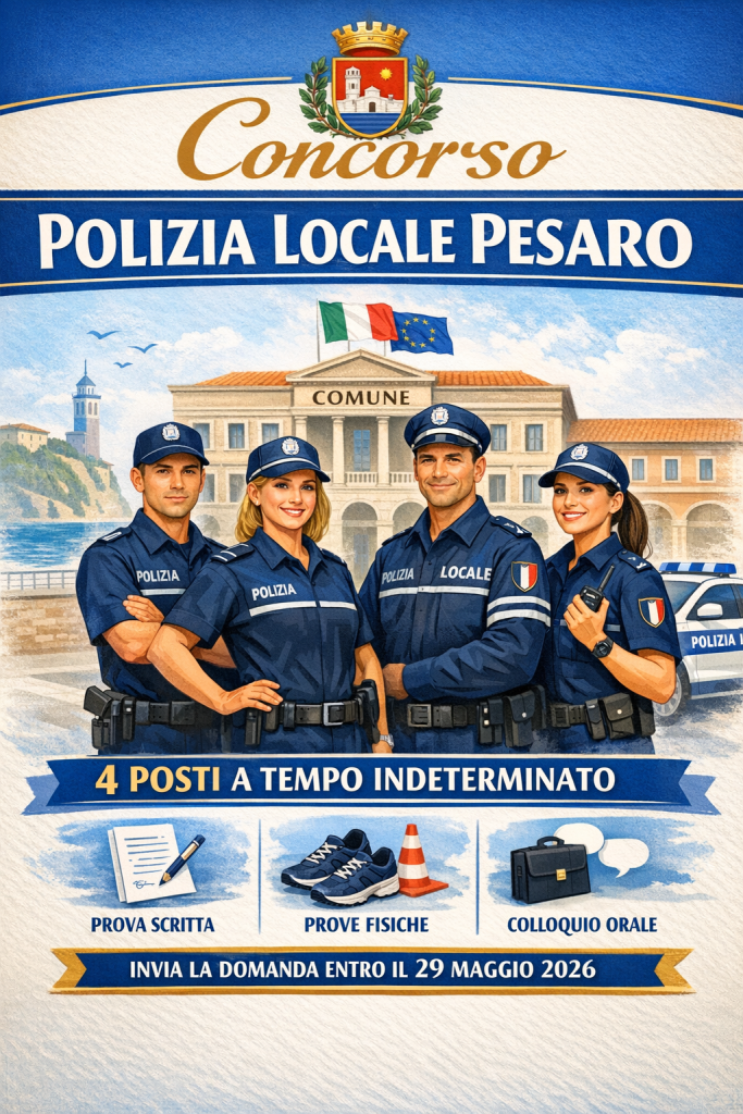«Il Comune di Pesaro rafforza il proprio impegno per la sicurezza urbana con l’apertura di un concorso pubblico per l’assunzione di quattro agenti di Polizia Locale a tempo pieno e indeterminato. Un segnale chiaro di attenzione verso la tutela del territorio e dei cittadini, attraverso il potenziamento del presidio sul territorio». Ad annunciarlo son il sindaco Andrea Biancani e gli assessori alla Sicurezza Sara Mengucci e al Personale Riccardo Pozzi. «La Polizia Locale svolge infatti un ruolo fondamentale di presidio quotidiano: garantisce ordine e decoro urbano, collabora con le forze dell’ordine per assicurare risposte efficaci ai bisogni dei cittadini. Investiamo sul controllo del territorio con azioni concrete perché una città più sicura è una città più vivibile per tutti».